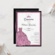This elegant pink quinceanera invitation has a pink printed glitter dress, a pink tiara crown, and a custom photo on the back with a personalizable template to create your own invitation. The template is customizable in the listing editor and is also available as a digital download that's printable after you personalize it.