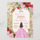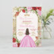 Pink Dress Red Flowers Princess Gold Mis Quince Invitation