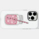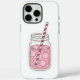 Cute and refreshing phone case featuring a mason jar filled with pink iced drink and a striped straw.