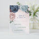 pink, dusty blue and navy blue flowers greenery RSVP card