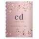 A dusty rose, pink faux metallic looking background with rose gold and pink dripping stars.. Personalise and add your monogram initials, name and a title/year. Dark grey coloured letters.