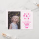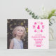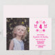 Easter fourth birthday invitation with pink bunnies and Easter eggs. Photo template via Pixabay licensed under CC0 and must be replaced with your own photo