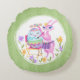 Pink Easter Bunny Rabbit and Egg | Round Cushion