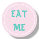Simple modern EAT ME favour stickers in tones of pastel pink and teal.