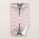 Add a touch of Paris to your bath with this unique Pink Eiffel Towel Flourish Towel Set. Towel set design features a vibrant wavy background with the Eiffel Tower adorned with elegant flourishes and space to personalise with your name. Additional colours available with this design as well. Please contact me directly if you need assistance with personalisation.