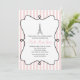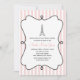 Elegant and chic invitations feature a beautiful Eiffel Tower illustration on a pink and white stripes background. Perfect for any bridal shower, bachelorette party, birthday party, sweet sixteen, quinceanera, and more!