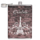 Enjoy your favourite alcoholic beverages anywhere with a Pink Eiffel Tower Grunge Flask. Flask design features a grungy brick background in pink with the Eiffel Tower adorned with elegant flourishes and space to personalise with your name. Additional colours available with this design as well. This item may be personalised with a name, monogram, or favourite saying of your choosing. Please contact me if you need assistance with personalisation.
