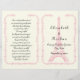 Pink Eiffel Tower Paris destination folded wedding program. The perfect ceremony and party wedding program design for your Paris wedding features the Eiffel Tower in the centre and a damask border in pink. Choose only the value paper and fold it in half.