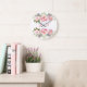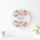 Pink Elegant Floral Wreath Monogram Wedding 25th Large Clock