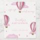 celebrate your special baby shower with our lovely cute modern elegant pink watercolor hot air balloon baby shower adventure travel theme, feature with calligraphy " up up and away", watercolor pink stars, cloud, and hot air balloon in the sky. you can customise and personalise your own text and colour via "personalise this templete