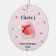 Pink Elegant Santa Hat Baby's Frist Christmas Ceramic Ornament