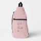 A minimal pink sling bag with a pink arrow on the bottom where above that you can personalise it with a logo, name or letter or just keep as is with the phrase "Girl Boss". Modern girly theme.