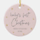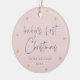 Pink Minimalist Elegant Star Calligraphy and Photo Baby's Frist Christmas Ceramic Ornament, Front feature with " Baby's First Christmas" text, gold star and personalised baby name. Back you can personalised baby photo.