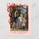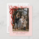 Pink Elegant Watercolor Red Bow Christmas Photo Holiday Postcard