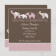 This birthday invitation has a row of elephants standing over the words "You're invited to a Birthday Party for" and then you add your information with the zazzle tool. You can add a message on the back of the card or remove. Envelope come in the exact size of this invitation.