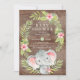 Pink Elephant Girl Rustic Baby Shower Invitation