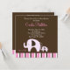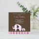 Sweet Mummy and Baby Pink Dottie Elephant stripe design with a dark chocolate background and trendy stripe bottom. This invitation is full-colour on both the front and back, which leaves plenty of room to write! This is a super cute, one-of-a-kind elephant theme invitation that Mum's will love to hand out and guests will love to receive! Perfect for any baby girl baby shower!