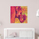 A pink (or is it red?) elephant holding a hibiscus flower.