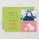 Whimsical illustration of pink elephants designed on custom Photo Birthday Party Invitations. Adorable & sweet invitation design for your precious child's ANIMAL THEME or SAFARI THEMED BIRTHDAY PARTY! All the sample text & picture can be fully customised with your own wording + photo. Feel free to change the colours, sizes & fonts of the text as well. ((Contact ujean4791@gmail.com for custom work and/or matching items.))