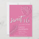 Pink Embossed tropical leaves summer sweet 16 Invitation