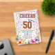 A modern design featuring a dark gold glitter number 50 with pink and emerald glitter and colorful flowers on the bottom. Customize the details for a chic Birthday Celebration.