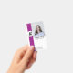 Bold and modern pink employee ID badge featuring a large customisable photo, your name, title, logo, and scannable QR code. Includes printed ID number and return address on the back. Great for consultants, staff members, and professional workspaces.