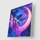 Magic Fairy with Pink Wings on a Neon Crescent - Starry Night Maximalist Art, Fantasy Colourful Unique Decor. (PLEASE! - See also other new collections for more choices) ((Attention!!! - By changing the size of the product, the Design picture can be shifted, it can be adjusted to the new size by clicking on the button - “Personalise \ Edit using Design Tool”, I always leave the opportunity to change the size and position of the Design on the product to your taste.))
