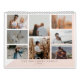 A Modern and cool family monogram name pastel blush pink 20 photos collage grid with a geometric abstract colour block. All the colours are editable..