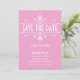 Simple and elegant Fancy Ornamental Save the Date Announcement in pink and white featuring a sophisticated art deco style ornamental flourish border. Easy to customise, simply add your wedding details in the text fields provided. Click "Customise It" to find more personalisation options.