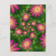 Pink Fantasy Flowers Modern Abstract Fractal Art Postcard