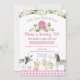 Pink Farm Animal Floral 2nd Birthday Invitation