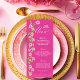 Step into a world of pink perfection and get ready to dazzle with our Quinceañera party celebration menu. Our fashion dream gown Quinceañera menu is the epitome of elegance, style, and fashion, designed to make you feel like a true princess on your special day. The design features our pretty pink flower frame. The reverse side features our beautiful elegant pink glitter dress. Design by Moodthology Papery