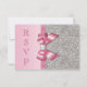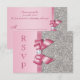 Personalised wedding RSVP flat cards / invitations. Elegant custom silver and pink colours double sided response cards with a beautiful sparkly printed glitter sequins pattern, cute shiny printed vector bows and ribbons and pretty, stylish printed image diamonds bling jewels and pink text. These classy glamourous, fashionable pink and silver formal rsvps are decorated on both sides. Beautiful, chic, trendy, modern double sided cards with glitz and glamour. Please note: All invites on Zazzle have flat printed images. I have matching products for weddings in my store. Text, font and colours of font are all personalizable / personalisable to meet your needs. If you need assistance customising your product please contact me through my store. I will be happy to help.PLEASE NOTE:- All invitations on Zazzle have flat printed images.