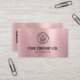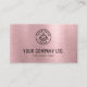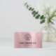 This sophisticated business card design features a chic brushed metallic pink background, offering a touch of modern luxury. Your custom logo and company name are elegantly showcased on the front in a dark, legible font, while the reverse side thoughtfully arranges contact information and a QR code for seamless networking. This design perfectly combines refined aesthetics with practical functionality, ensuring a memorable first impression.
