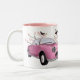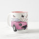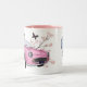 This mug features a Pink Figaro. There are many pink figaros out there, but it is not one of the four originals. Because the figg is a Japanese car I added cherry blossoms to the background and some tropical pink butterflies.