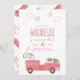 Pink Firetruck Birthday Invitation
