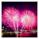 An eight-seconds exposure photo of many pink fireworks. Quebec, Canada.