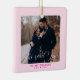 Pink First Christmas Engaged Couple Custom Photo Ceramic Ornament