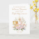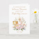 This design features an watercolor illustration of a gold colored chalice with a candle, surrounding by pink and white little flowers.