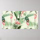 Pink flamingo and exotic flowers, palm leaves. Flo Poster