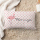 Pretty pink accent throw pillow done in a pink and white polka dot pattern. Graphics of a big pink flamingo and black script text reading Flamingo decorate both sides of the pillow. Personalise the text to read what you want. Matching duvet cover and pillow cases are available.