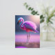 Pink flamingo art postcard