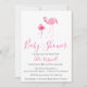 Watercolor pink flamingos with matching pattern on back, baby shower invitation. Personalise text, font style, colour and size.