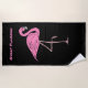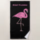 A beautiful pink flamingo on a black background. This 35x70 beach towel will look great at the pool or beach. Be bold, be a flamingo! Matching tote bag available.