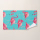 Flamboyant Pink flamingo birds glamourous illustration on turquoise background made into scaleable seamless pattern