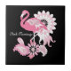 The product design features a flamingo with kaleidoscopic paisley patterns in shades of pink. This tropical bird whimsical illustration with personalised text makes a cool cute and unique ceramic tile.