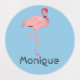 Custom kids name label stickers featuring pink flamingo standing on one leg. Three colours, pink and pastel blue and white, for variety. Whether you live in Florida or simply have a flamingo lover kid, these custom name labels are a great idea for personalising all your kids' stuff. Use them as labels on school snacks and lunches, books, electronics and other important stuff!