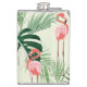 Pink Flamingo Exotic Flowers Pattern Hip Flask