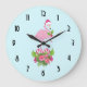 Pink Flamingo in Santa Hat Whimsical Christmas Large Clock