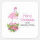 Pink Flamingo in Santa Hat Whimsical Christmas Square Sticker